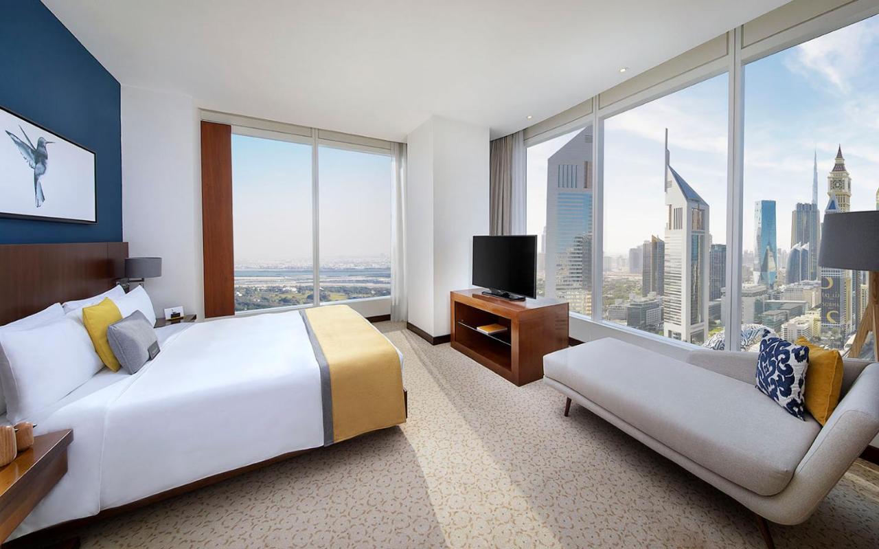 <p>With a premium location on Sheikh Zayed Road, this 5-star hotel overlooks the Dubai World Trade Centre. It features 4 restaurants, an outdoor pool and spacious meeting rooms.</p>